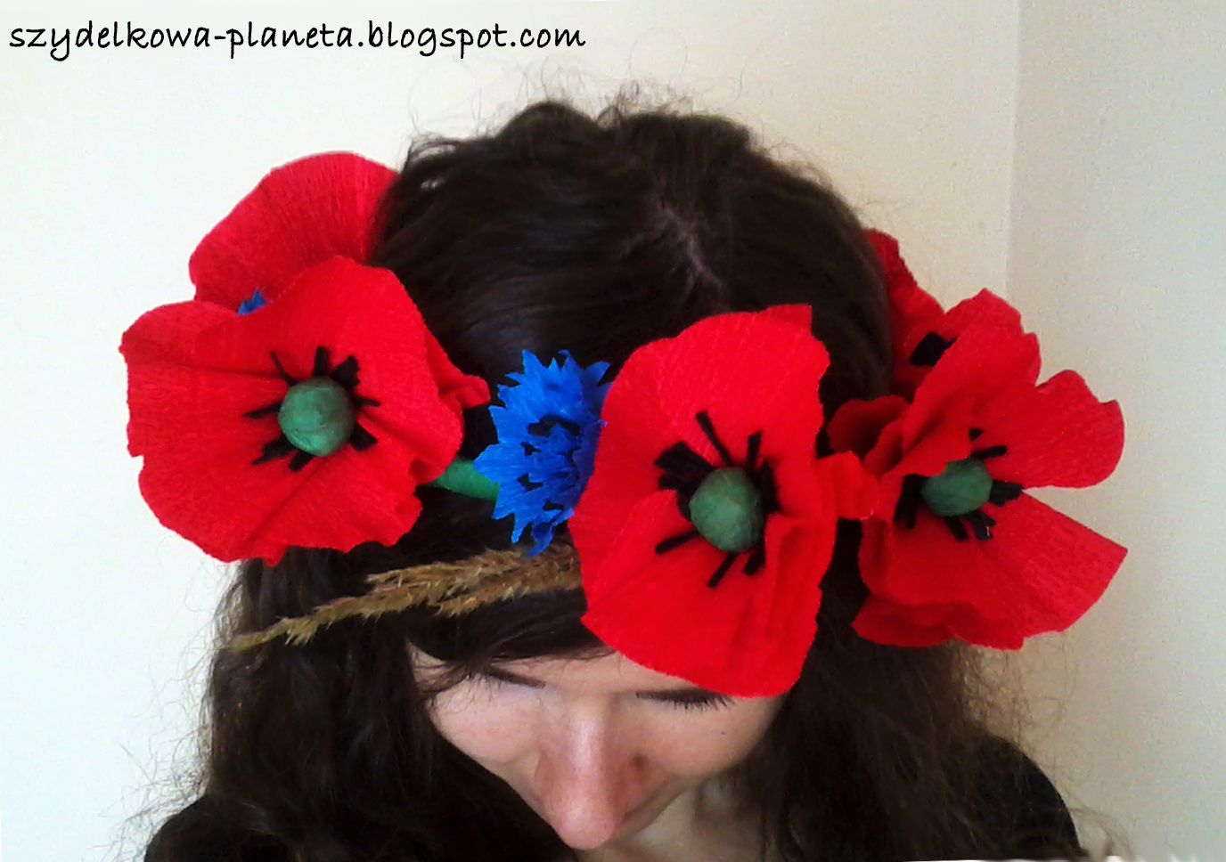Zbliża się niezmiernie ważne święto w pracy mamy, czyli Gala Przedszkolaka :D. W tym roku tematyka to "Raz na ludowo", więc oczywiście wianki bardzo przydatne. Robiąc wianek dla mamy postanowiłam skorzystać ze sposobu na wykonanie kwiatów z krepiny, który poznałam kiedy tworzyłam palmę wielkanocną. Myślę, że efekt jest dobry, bo dzięki wielkości i barwie kwiatów, będzie je widać z daleka. Przynajmniej mam taką nadzieję.